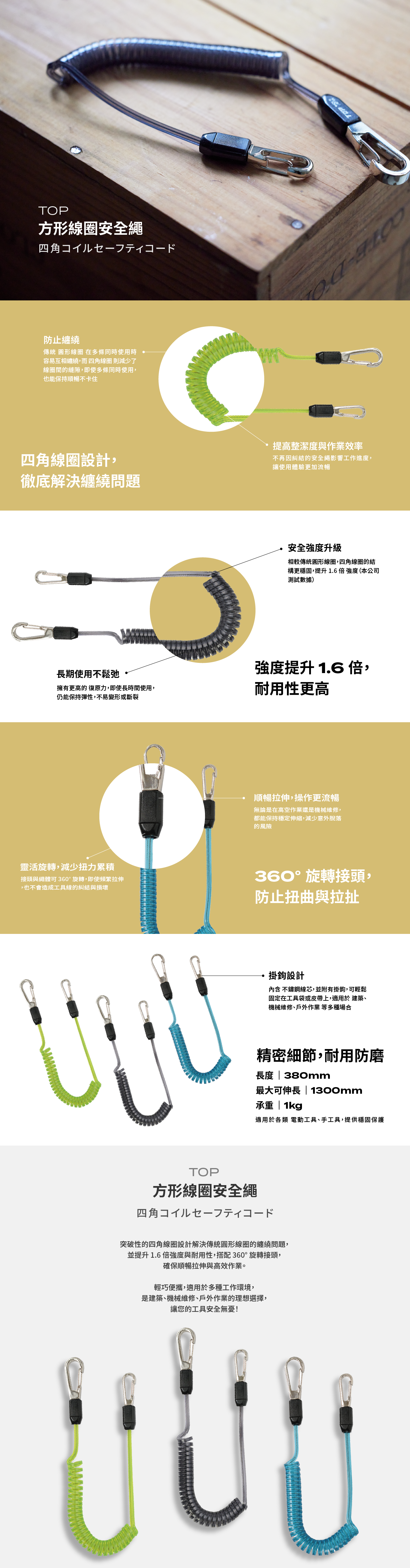 TOP 方形線圈安全繩〔黑〕